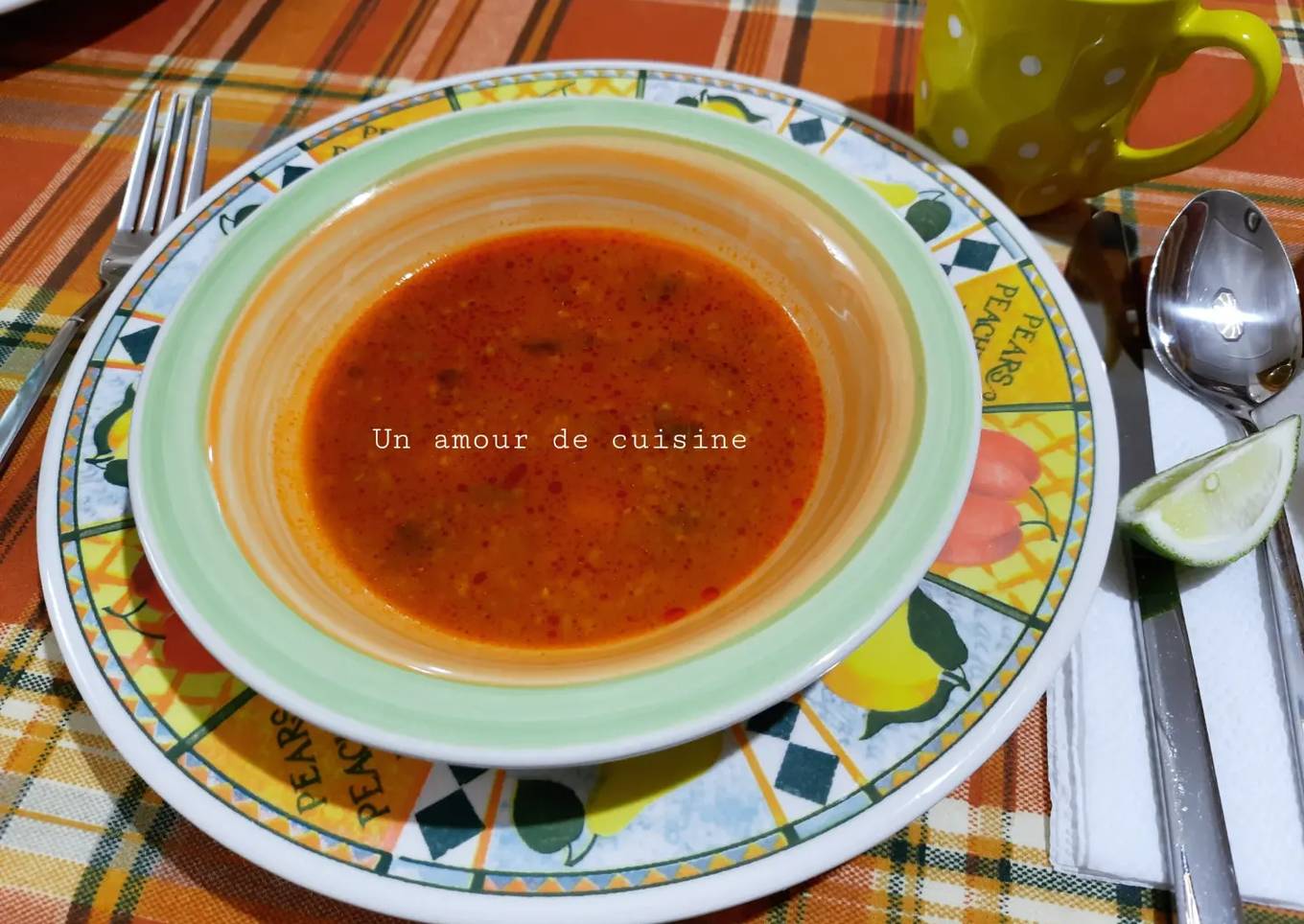 - Servez la soupe chaude accompagnée de pain traditionnel, jus de citron et hrissa.