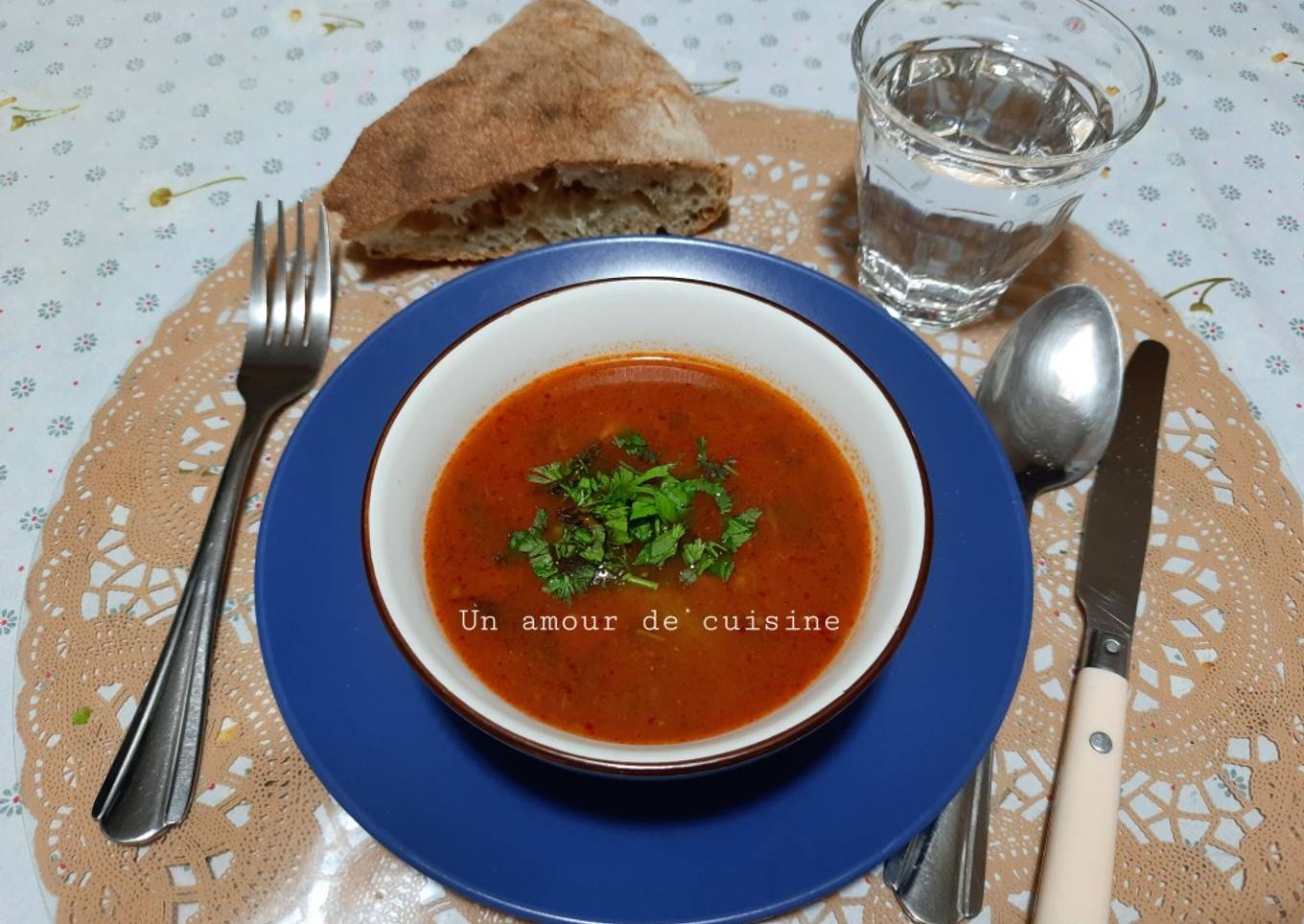 - Servez la soupe chaude agrémentée de coriandre ciselée et accompagnée de citron de de pain traditionnel maison.