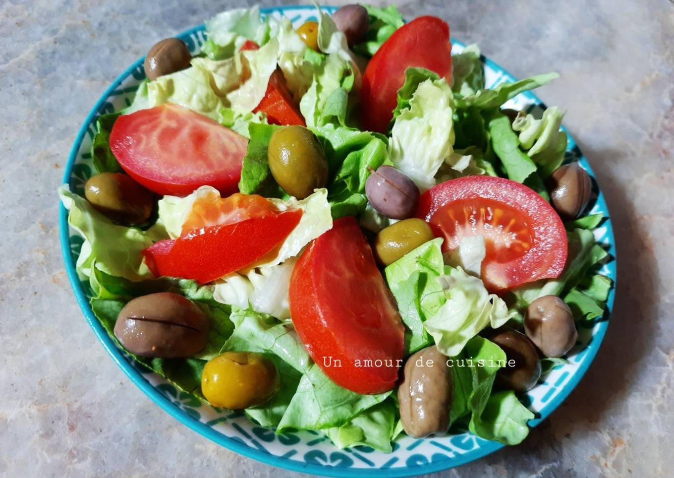 - Agrémentez la salade du mélange d'olives.