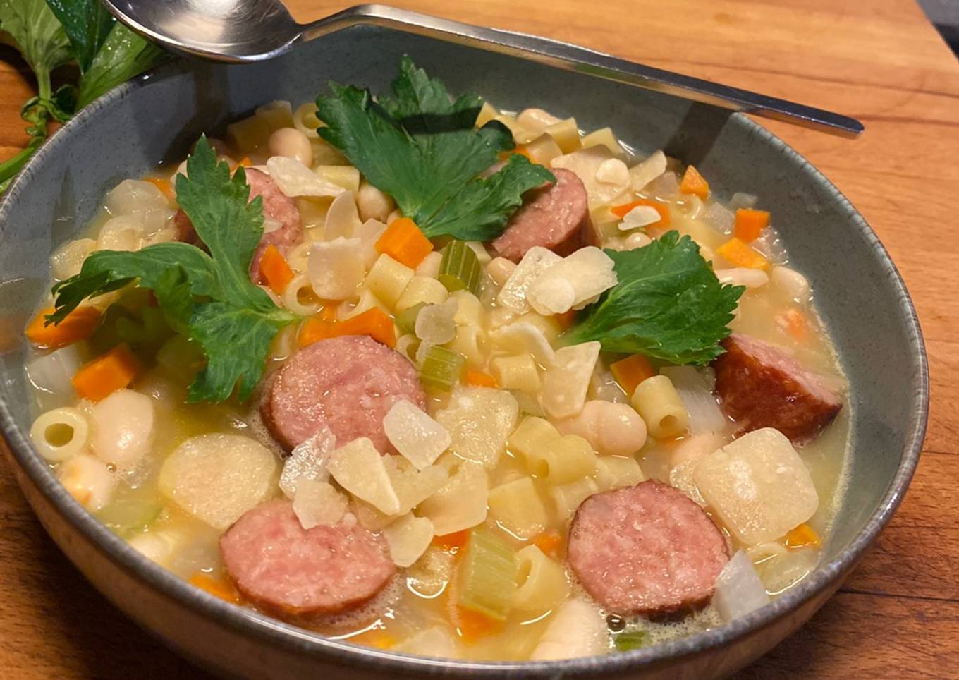 🥕Minestrone de légumes, saucisses fumées et haricots blancs 🍲